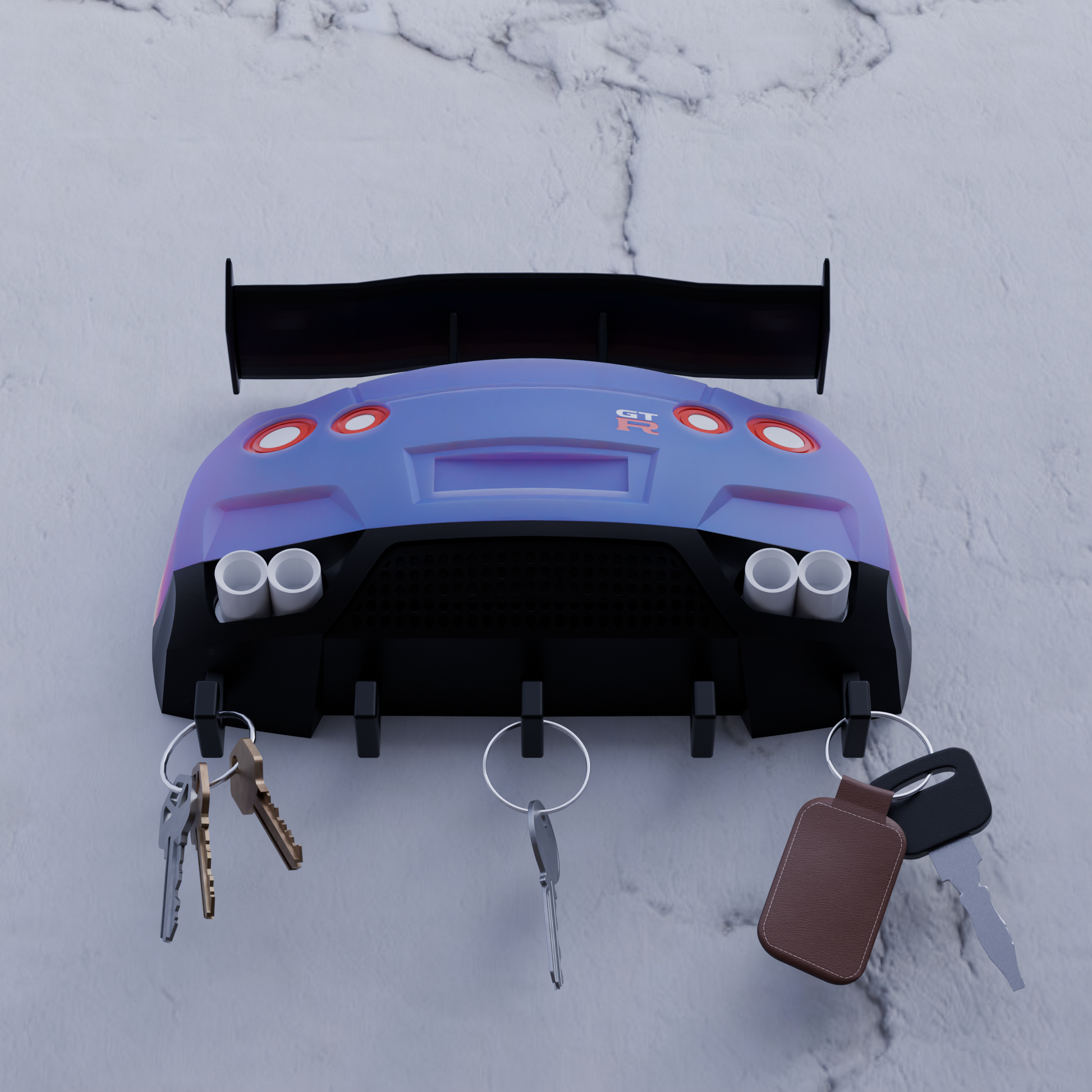 מתלה מפתחות בעיצוב אחורי של רכב ספורט – שילוב מושלם של סטייל ופונקציונליות.